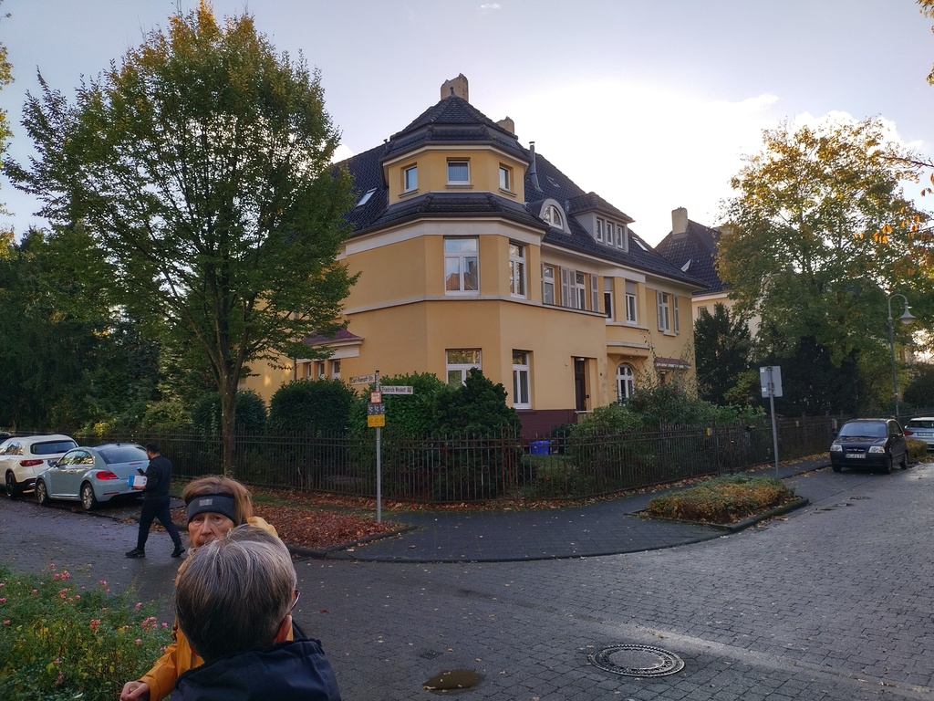 Der Spaziergang führt durch die Kolonie, die Gebäude für (Jung)-Akademiker, die Villen und thematisiert auch die Villa von Carl Duisburg, den Japanischen Garten, des Kasinos und des Parks.