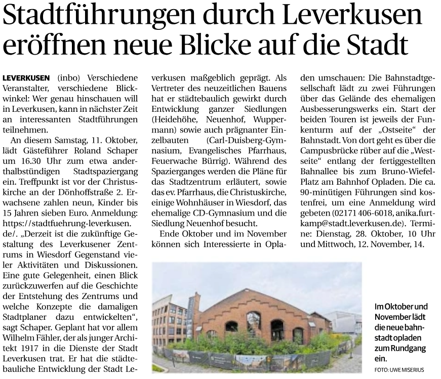 Die Rheinische Post berichtet über Führungen am kommenden Wochenende, unter anderem zu Wilhelm Fähler